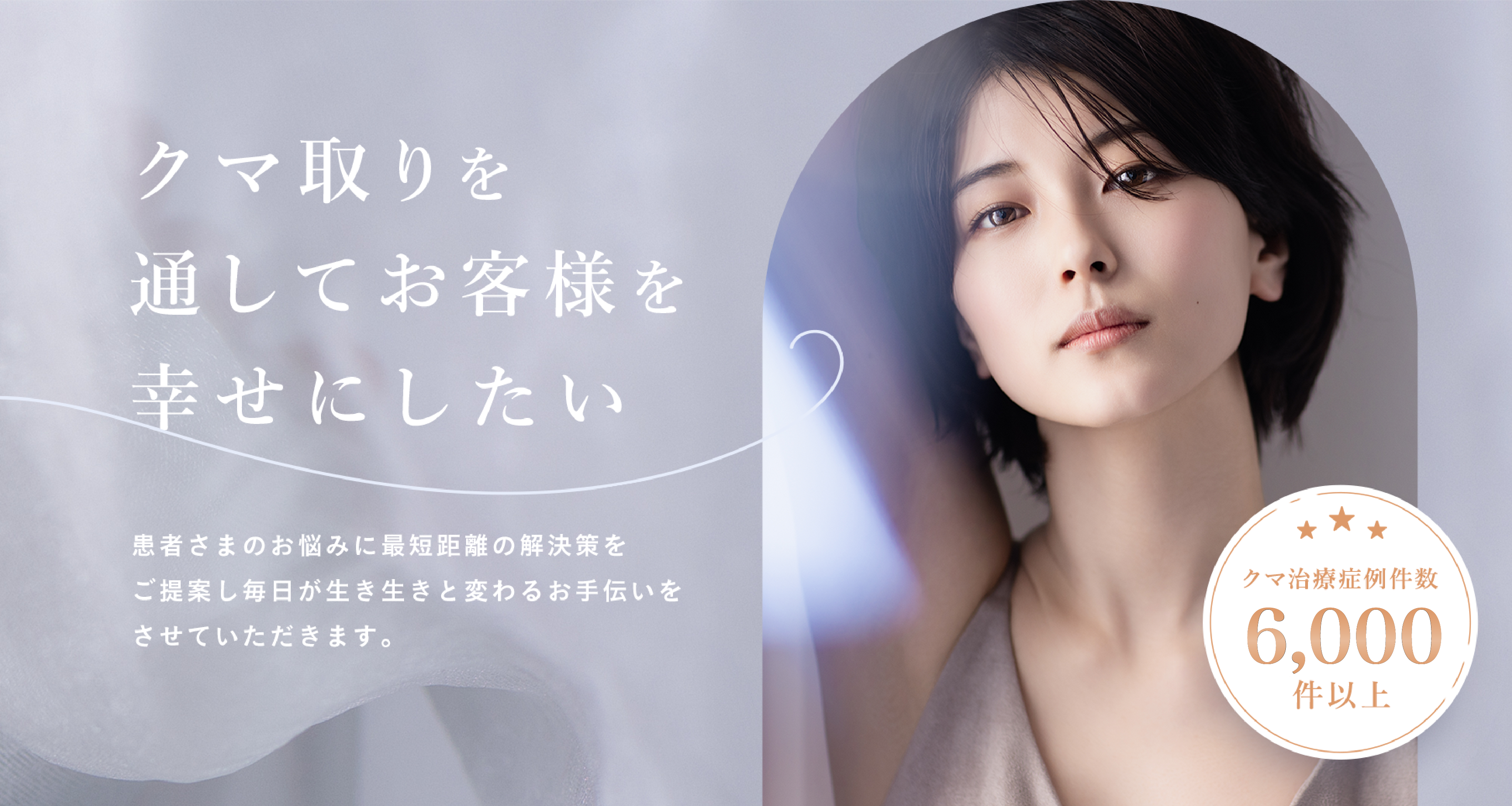 当院は東京・銀座にあるクマ取り専門クリニックです。明るく健康的な目元を取り戻す事は本来の美しさと自信を取り戻す事ができます。美しく、再発予防を考えた根本的なクマ治療をご提案いたします。