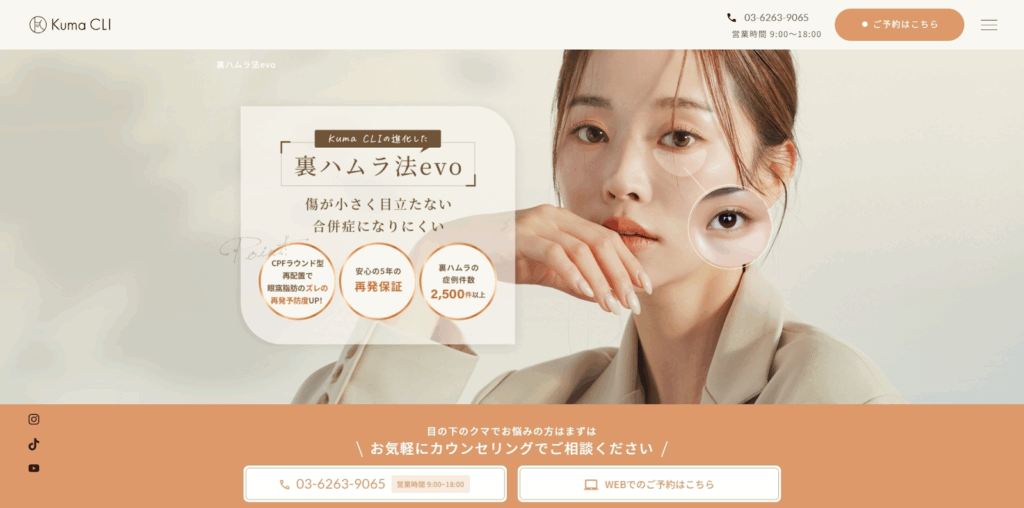 >>【銀座徒歩5分】クマ取り専門クリニックKuma CLIの裏ハムラ法evoの詳細はこちら