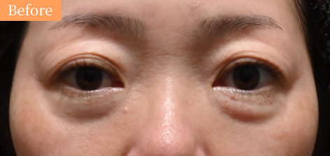目の下のふくらみ・たるみの改善、色やシワを改善していく施術です。 症状が単一な方もいれば膨らみ・色味などと複合して目立っている方もいます。
